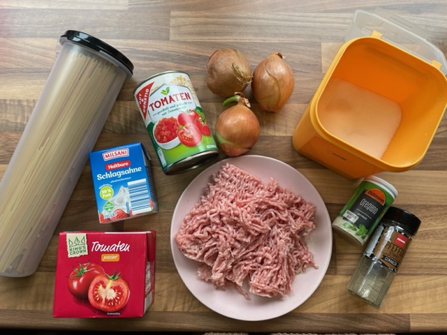 ZUTATEN FÜR 4 PORTIONEN SPAGHETTI BOLOGNESE: