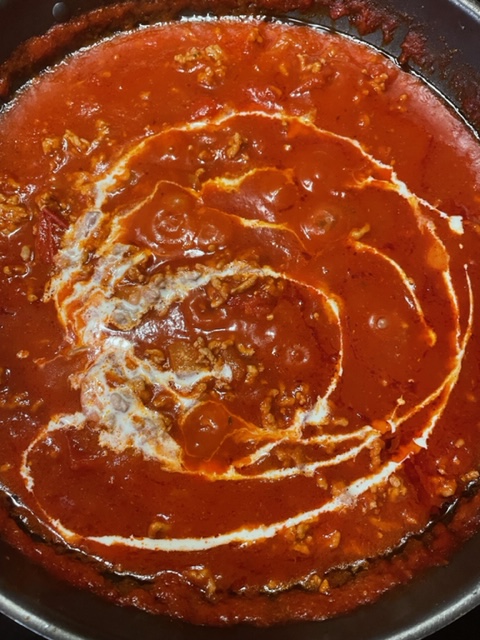 Nun kann das Ganze erstmal eine Weile einkochen und reduzieren. Ihr könnt in der Zwischenzeit schon mal das Nudelwasser mit Salz zum Kochen bringen.