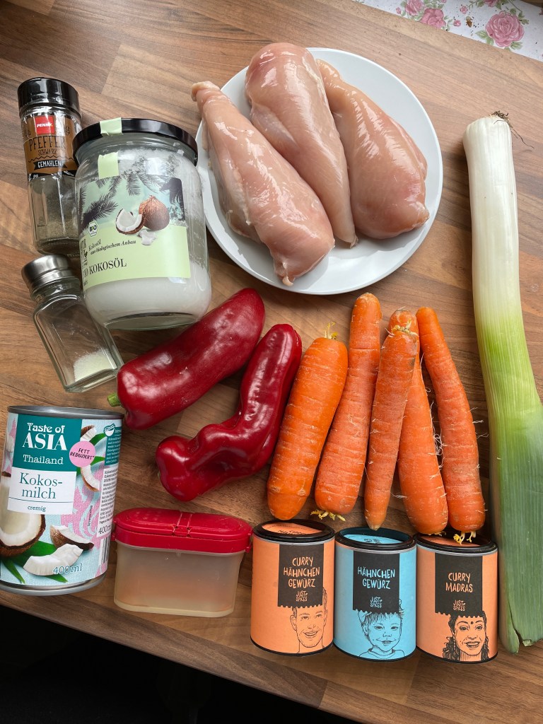ZUTATEN FÜR 4 PORTIONEN HÄHNCHEN-CURRY: